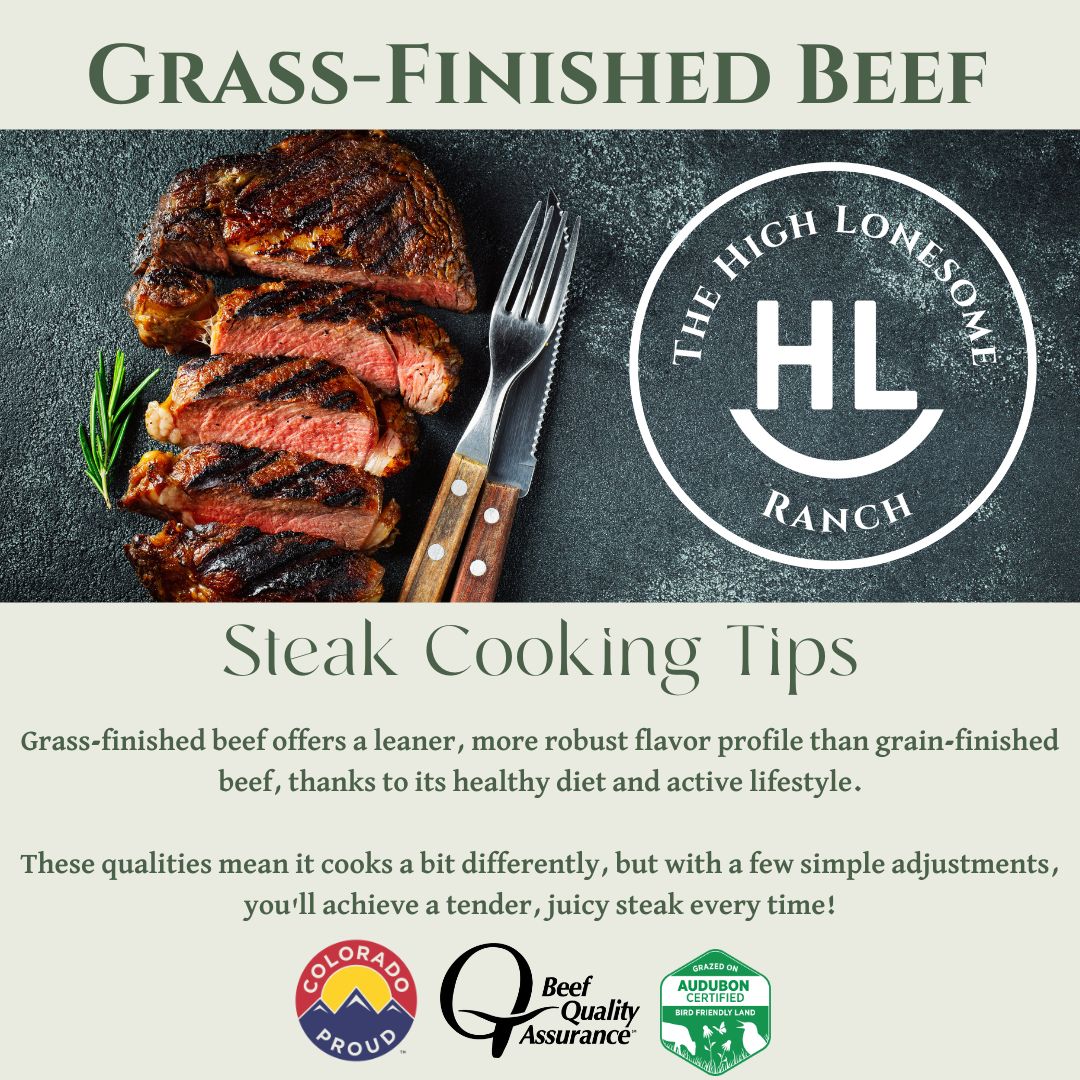 You've brought home some of the finest, most flavorful grass-finished beef from The High Lonesome Ranch, and we're thrilled you're ready to experience the difference! We've heard from some folks that cooking grass-finished can be a little different from conventional beef, and it's true—its unique leanness and rich flavor profile mean it cooks up a bit differently.