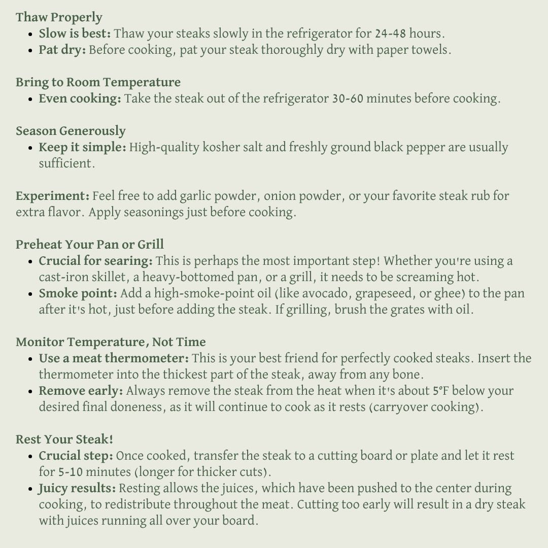 But don't worry, you're in for a treat! With a few simple tips, you can consistently achieve that perfect, tender, and incredibly delicious grass-finished steaks. We want to make sure every bite you take is a testament to the quality and care that goes into our ranch-raised beef. Get ready to transform your kitchen into a five-star steakhouse!