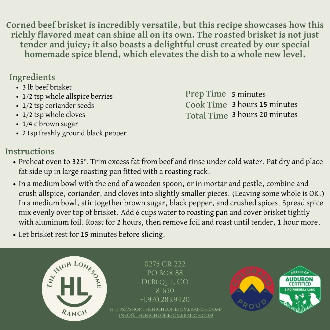 Want to try it? You can purchase grass-finished beef brisket at shop.thehighlonesomeranch.com